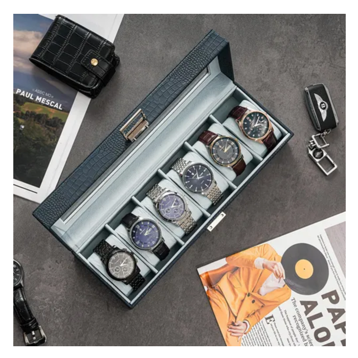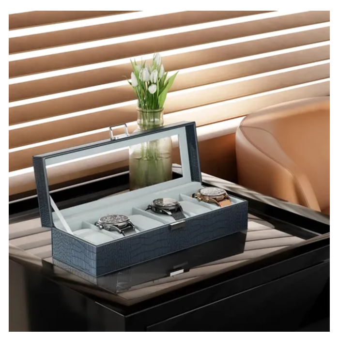 Capacidad para 6 relojes, ideal para colecciones personales o para exhibir modelos favoritos.