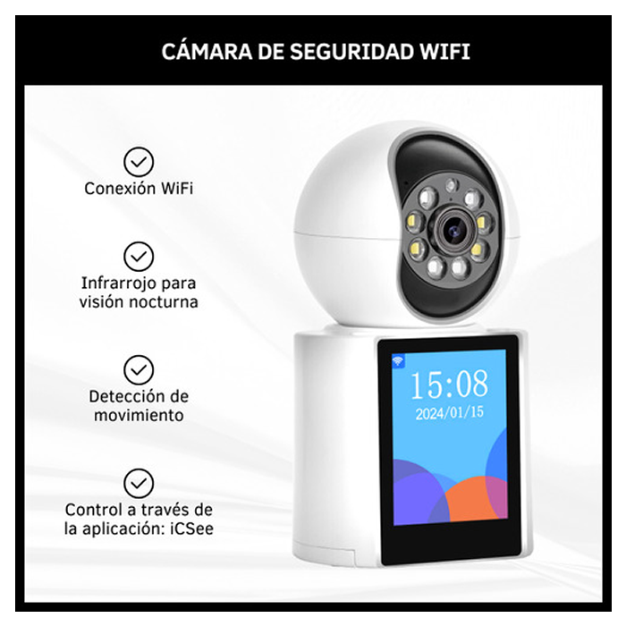 Detección de movimiento con alertas: recibe notificaciones automáticas ante cualquier actividad sospechosa.